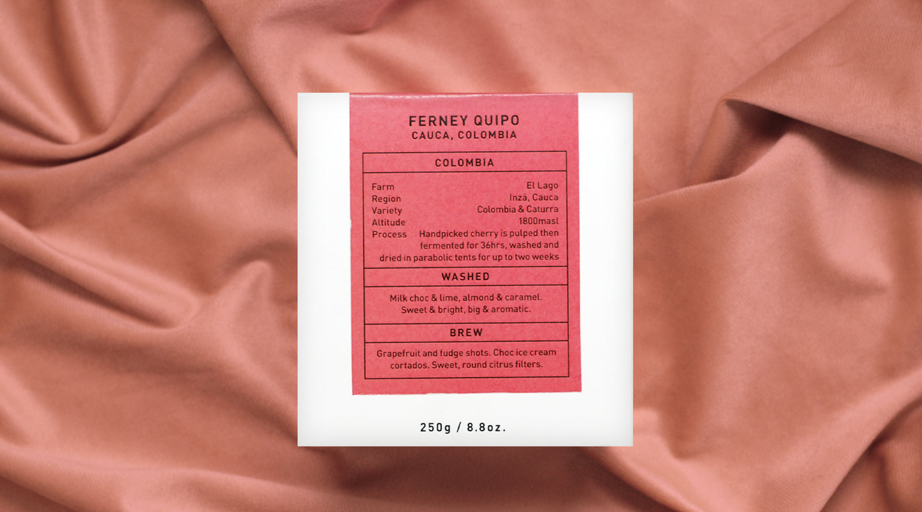 Sweet, classic and clean. The washed expression from young Cauca producer, Ferney Quipo's farm, El Lago brings easy-drinking milk choc, caramel and citrus to the cup.