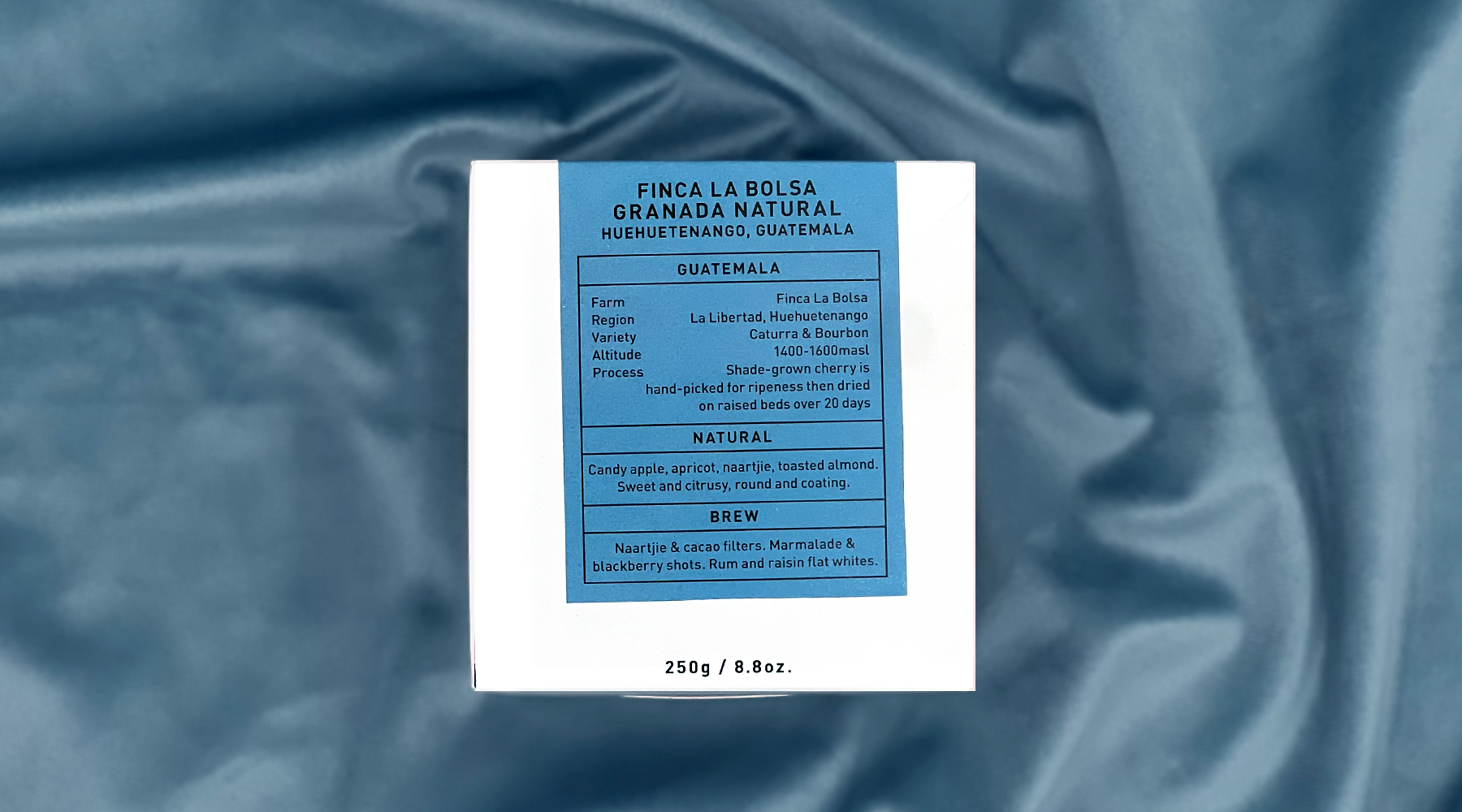 Grown on Finca La Bolsa, a 108ha farm founded in 1958 by Guatemalan specialty coffee pioneer, Jorge Vides, and now run by 2 generations of his family.
