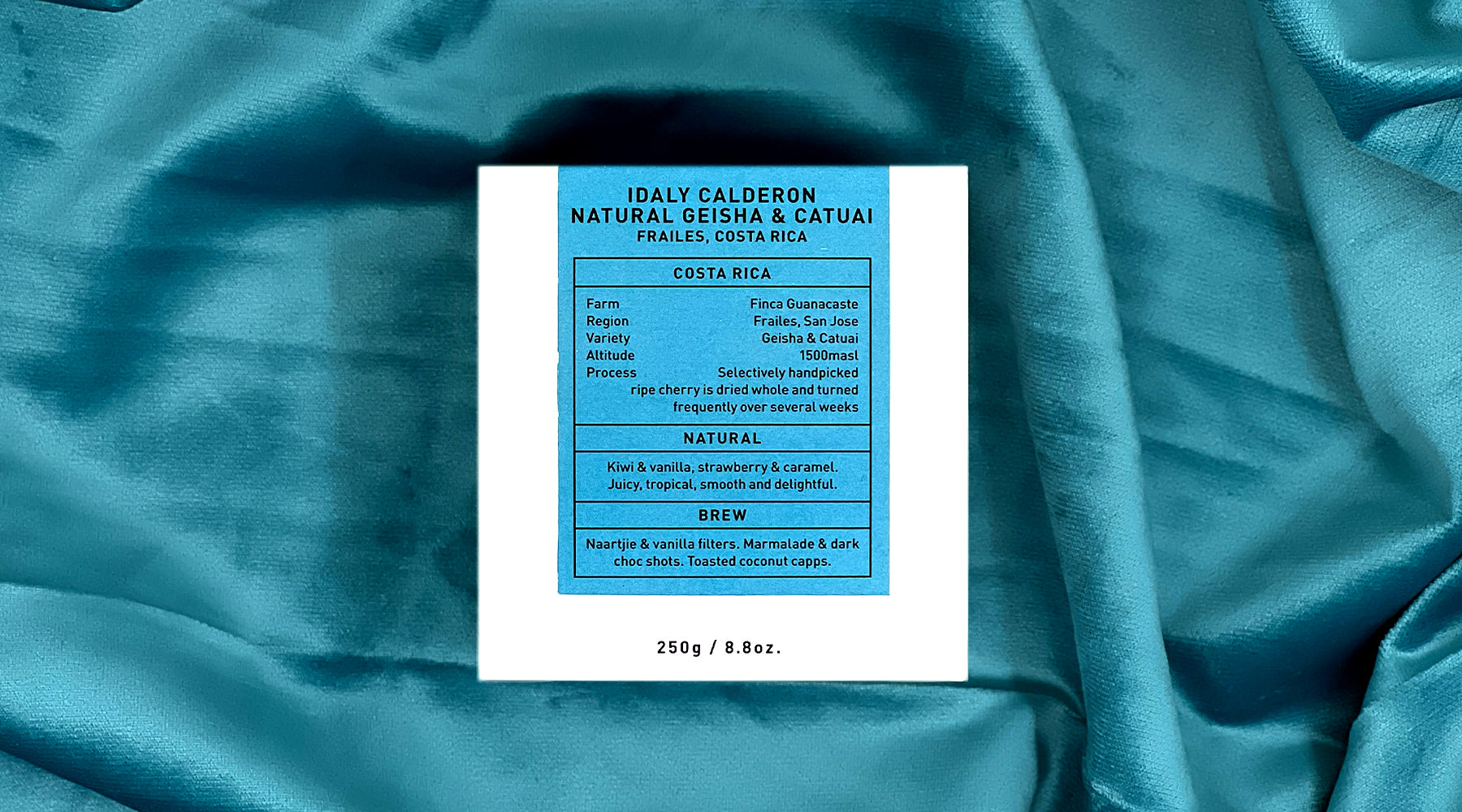 An unusual combo of geisha & catuai by Dona Idaly Calderon brings the best of both varietals to the cup. Sweet, delicate floral complexity from the geisha supported by bold body of the catuai.