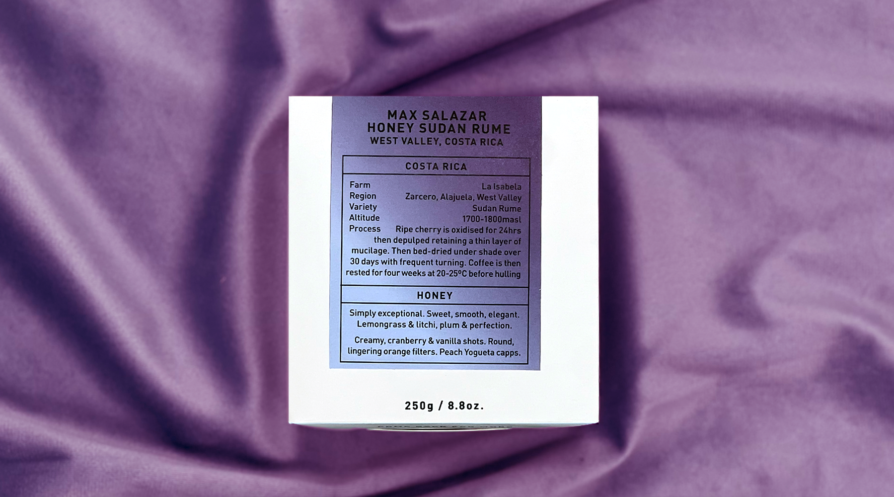 Max Salazar's meticulous honey process on this rare Sudan Rume takes little over 90 days to complete but delivers cranberry vanilla espressos you wish would last forever, lush orange filters that linger long after the last sip, and Peach Yogueta capps you'll never forget.