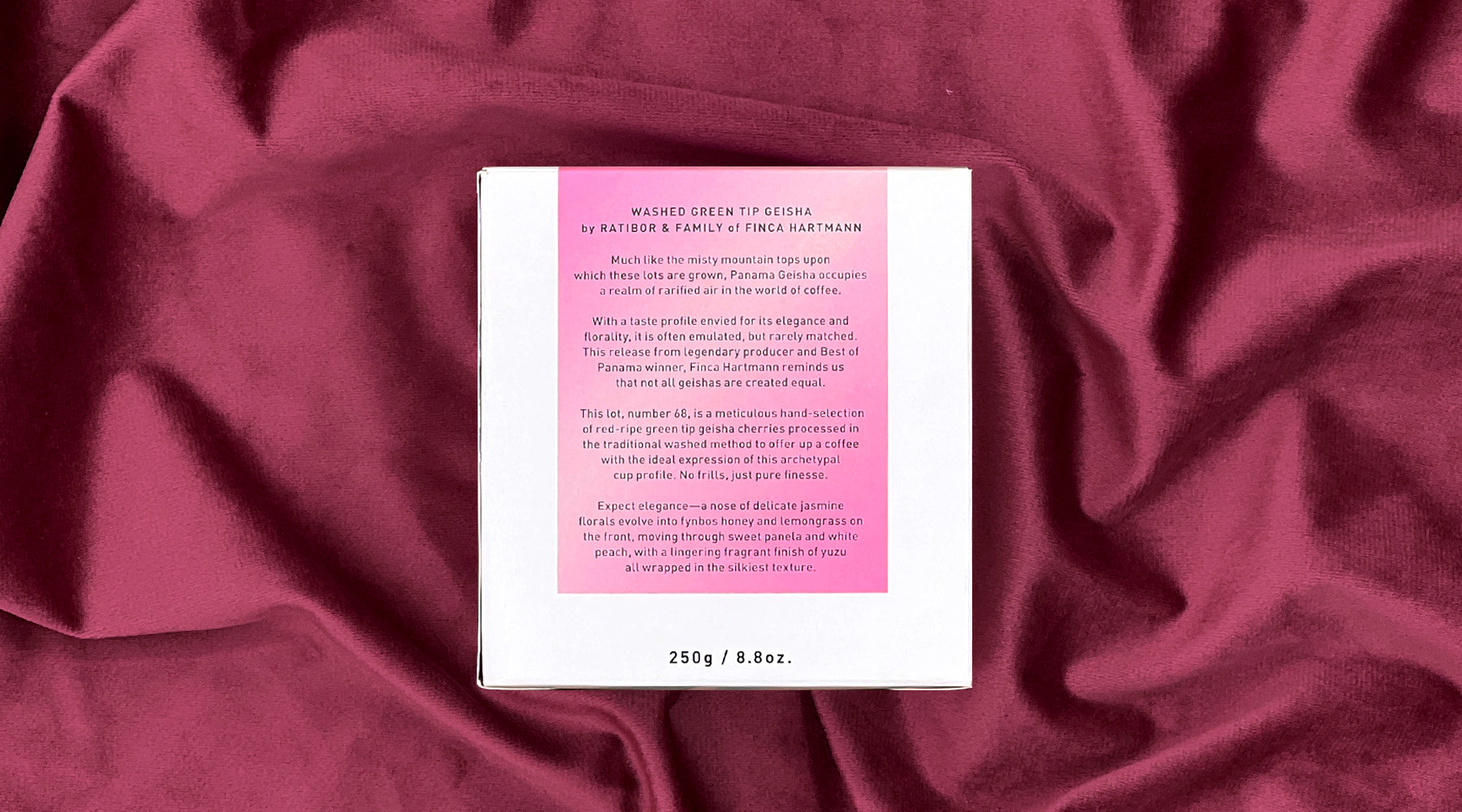 This lot, number 68, is a meticulous hand-selection of red-ripe green tip geisha cherries processed in the traditional washed method to offer up a coffee with the ideal expression of this archetypal cup profile. No frills, just pure finesse.