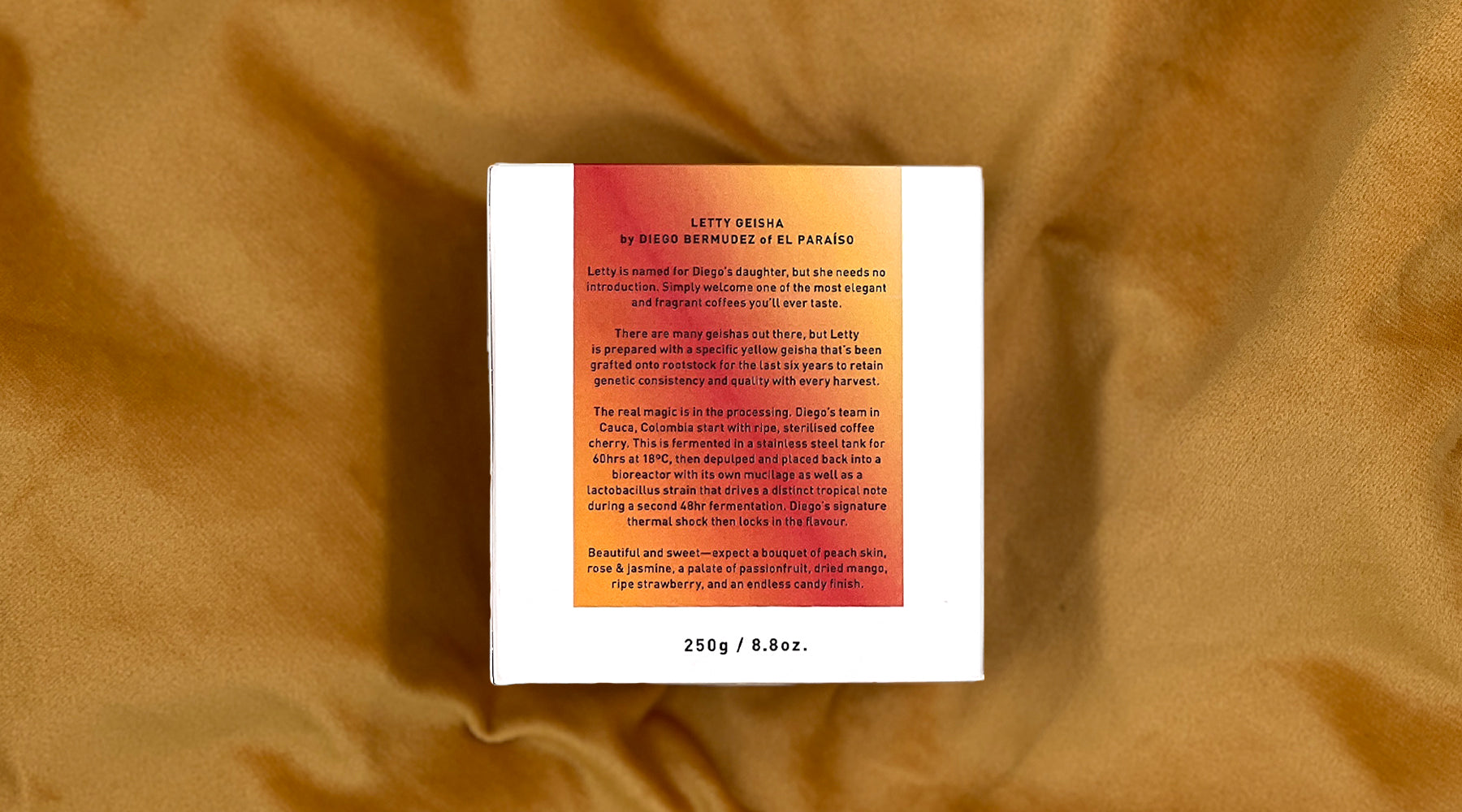 There are many geishas out there, but Letty is prepared with a specific yellow geisha that's been grafted onto rootstock for the last six years to retain genetic consistency and quality with every harvest.