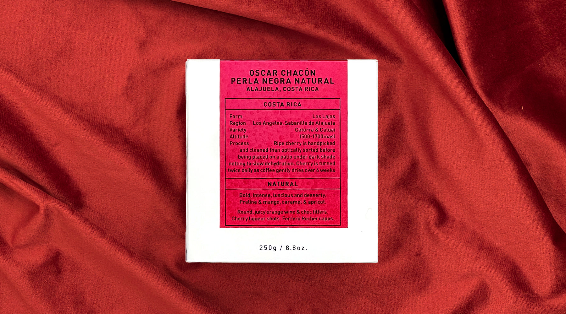Ferrero Rocher & orange wine on this naturally processed Caturra and Catuai lot from Oscar Chacón delivers a classic South African Christmas in a cup.